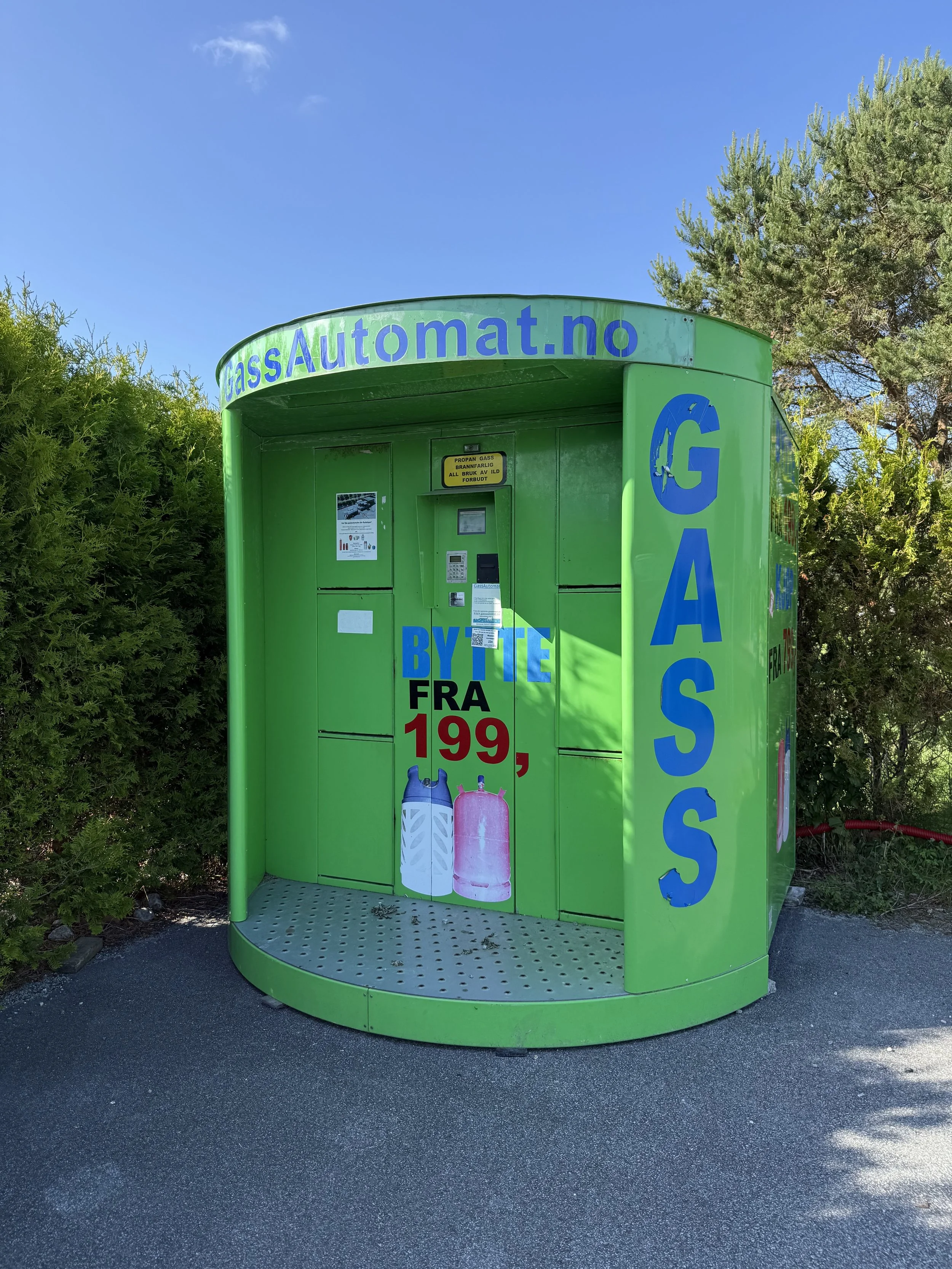 Gass! 10. juli Skrevet av Frode Steine Endelig har vi fått på plass en gassautomat. Den er plassert like ved tømmestasjonen. Frode Steine